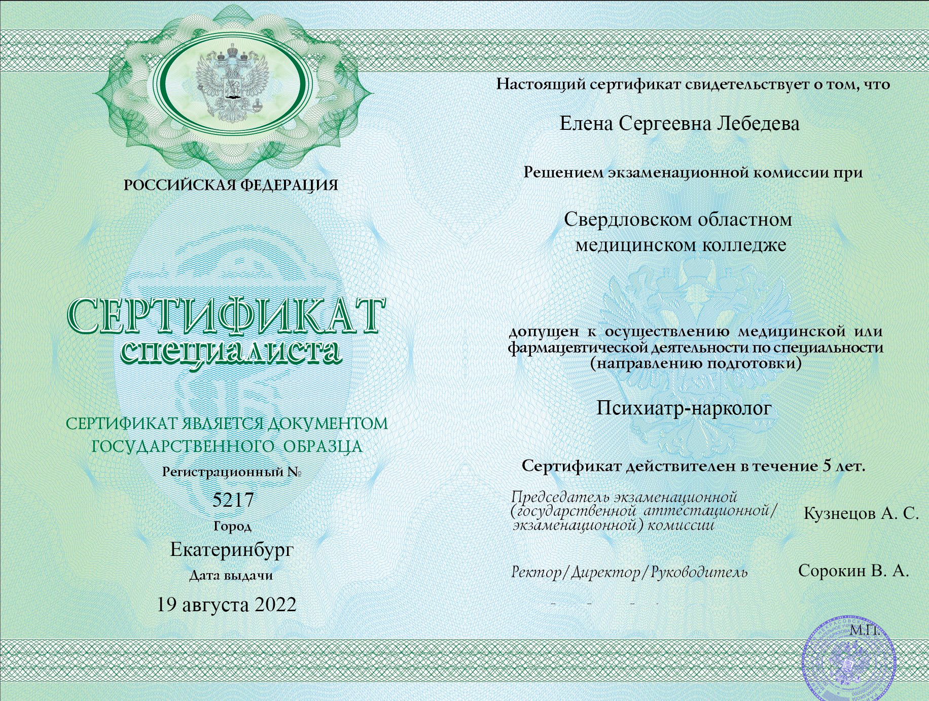 Елена Сергеевна Лебедева врач нарколог клиники доктора Стукаловой в Армавире